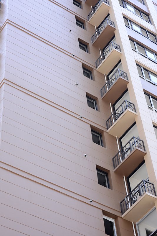 上海中福城(二期),共18層,高62.9m,是國內(nèi)第一棟高層鋼結(jié)構(gòu)使用NALC板作圍護(hù)結(jié)構(gòu)的住宅項目。外墻分別采用150、200厚ALC平板及藝術(shù)板,50厚ALC板防火包梁,共用ALC板20000平方米。成功解決了高層建筑的保溫(達(dá)到50%節(jié)能標(biāo)準(zhǔn))、抗震(滿足抗震設(shè)防烈度10度以上要求)和防火(耐火極限大于4小時)課題。共18層,高62.9m,建筑面積5.87萬m2,1~3層裙樓為商業(yè)樓,4~18層住宅共三幢塔樓呈品字形布置。采用鋼框混凝土筒體系,Φ500、450、350mm鋼管砼柱,HN400×200 H型鋼梁,110厚壓型鋼板鋼筋砼樓板。外墻分別采用150、200厚NALC平板及藝術(shù)板作ADR法外掛式和接縫鋼筋+ADR法內(nèi)嵌式安裝,50厚NALC板防火包梁,共用NALC板2900m3。